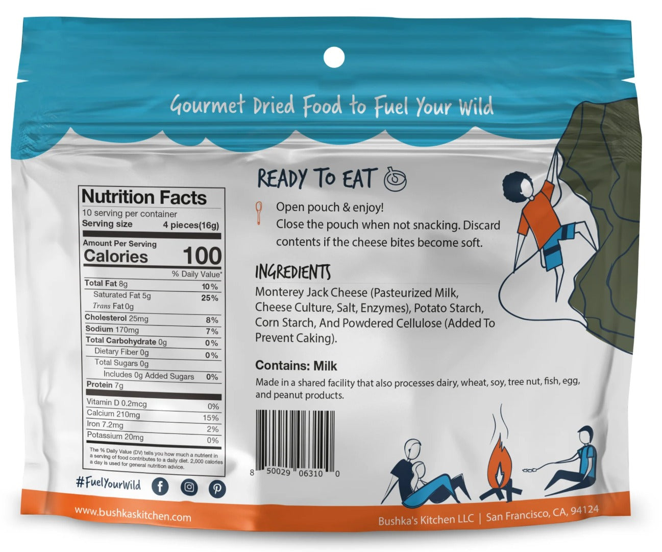 CHEESE! We can all agree that cheese is awesome, right? If you dream about cheese when you’re in the backcountry and fantasize about the charcuterie board you’ll create when you’re back in civilization, we’ve got you outfitted! Our Cheese Bites (10 Servings / 1,000 calorie pack) are beyond yummy, beyond satisfying, beyond nutritionally dense, and beyond calorie packed for any backcountry adventure. These tasty bites are just what you need for a healthy, calorie boosting snack or appetizer while you await your meal to rehydrate. Don’t forego the cheese! Perfect before, during, or after a long day on the trail. Fuel Your Wild!