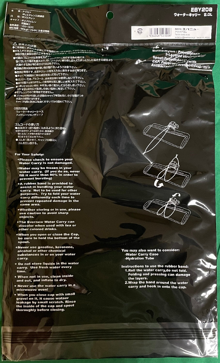 Evernew Water Carrier 2000ml / 67.6floz Flexible Water Bottle Canteen Reservoir EBY208.  Great for Camping, Fishing, Hunting, Hiking, Backpacking - any outdoor activity where you need to keep water available.