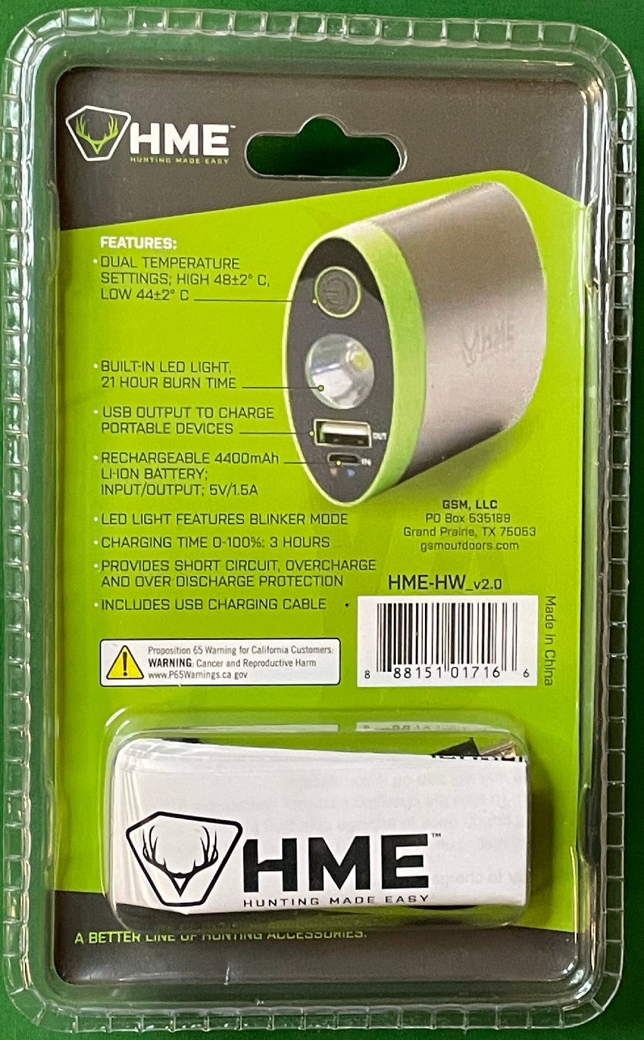 HME Hand Warmer w/4400 mAh Battery & Flashlight HME-HW