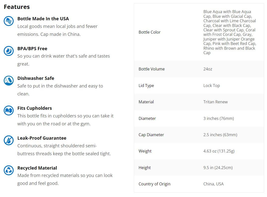 Sustain bottles are made with material derived from 50% plastic waste. Each bottle is created from resin powered by next generation recycling technology that transforms plastic destined for landfills into high-performance bottles.