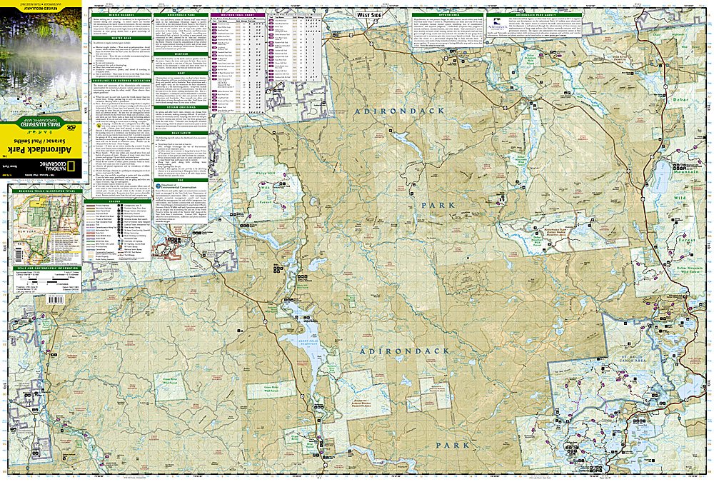 This Trails Illustrated map, produced in cooperation with the Adirondack Mountain Club, includes comprehensive coverage of the Saranac and Paul Smiths areas of New York's Adirondack Park. Includes UTM grids for use with your GPS unit and a trail mileage matrix.