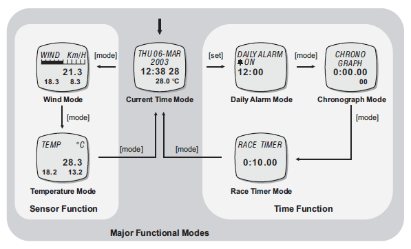 - Race timer mode, is a countdown timer to keep track of a fixed time period.