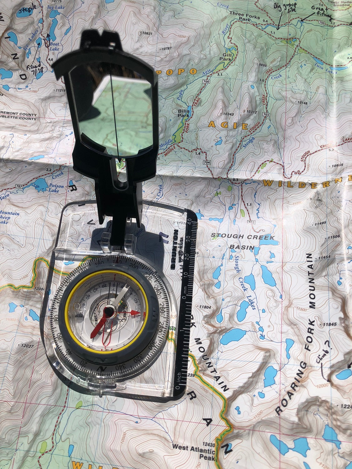 A compact sighting compass with mirror and clinometer provides confidence for advanced navigation and orienteering.