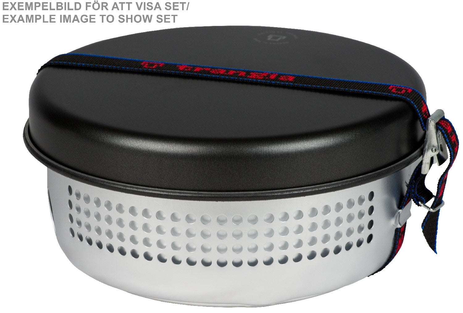 As a complement to our camping stoves, we have produced a camping set without a burner, designed to suit gas stoves. The saucepans have milled bases so they do not slip on the gas stove. This set is ideal for camping, boats, caravans or holiday cabins. The pots and lid are the same as in the 25 series with non-stick surfaces, and the set also includes a pot lifter handle and stuff sack.