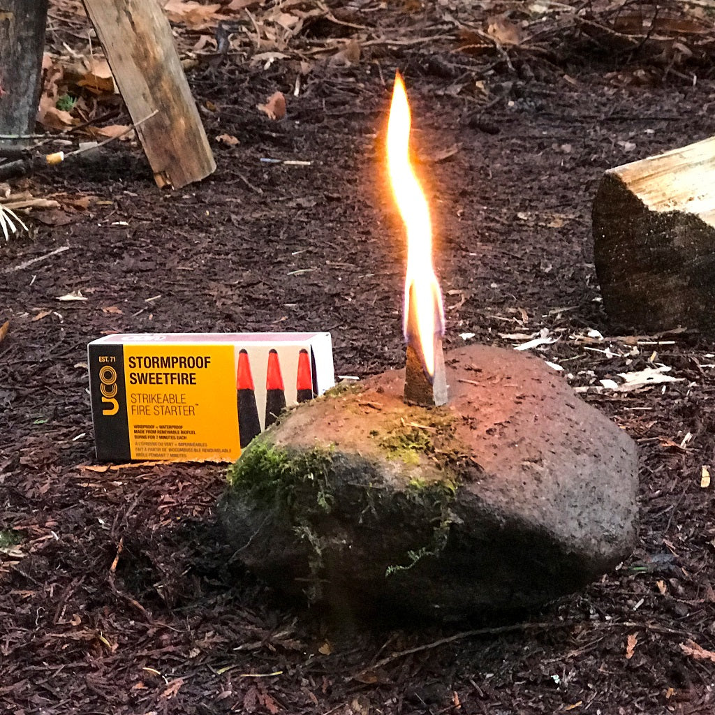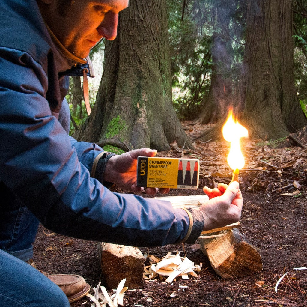 The advantage of the sweetfire over a normal match is that it includes tinder in the 'point'. Light the 'point' just like a match and it will burn for 7 mins to help you start a fire like a boss. Go prepared!