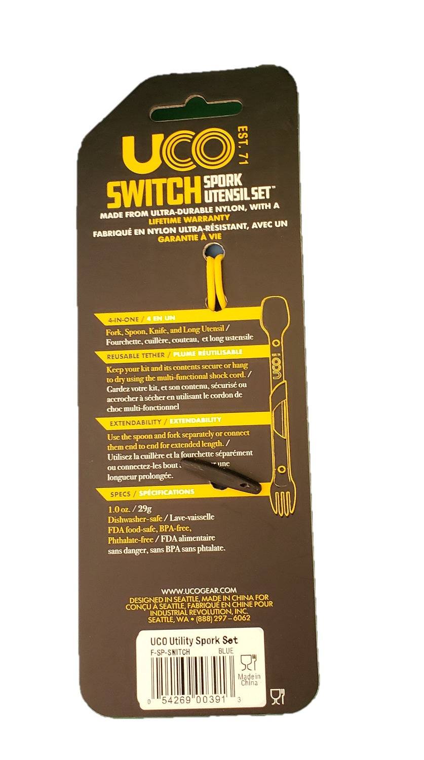 BRAND NEW UCO Switch Spork 2-Piece Knife-Fork-Spoon Combo Utensil Set w/Tether - Classic Blue.