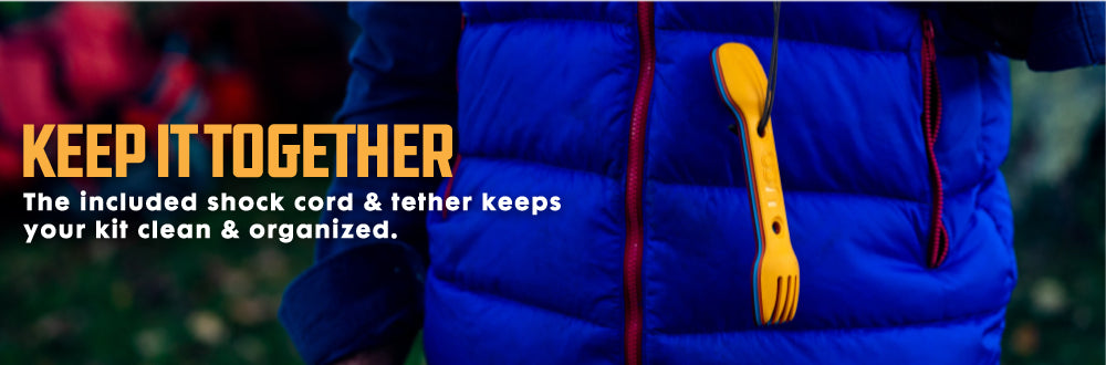 Often referred to as three-in-one, the Utility Spork is anything but a compromise. Micro serrations smoothly cut through protein rich foods and stab the perfect bite. Those holes arent just for weight reduction - use them to attach to a bag or pack, hang dry, or stack and cinch multiple utensils together for transport.