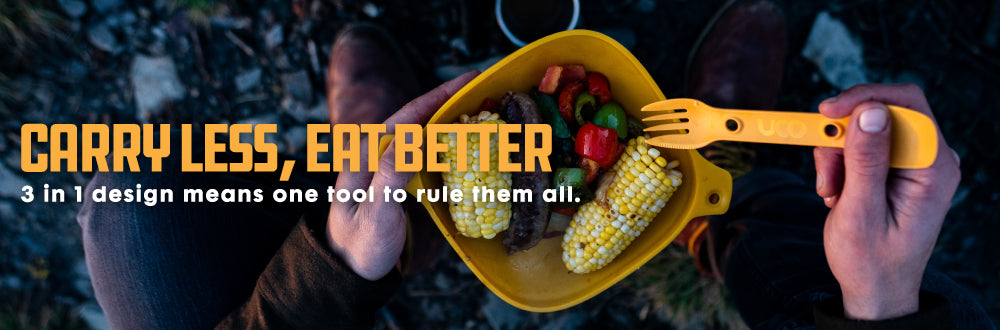 Often referred to as three-in-one, the Utility Spork is anything but a compromise. Micro serrations smoothly cut through protein rich foods and stab the perfect bite. Those holes arent just for weight reduction - use them to attach to a bag or pack, hang dry, or stack and cinch multiple utensils together for transport.