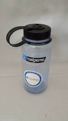 Nalgene Wide Mouth 16oz BPA Free Tritan Water Bottle Clear Gray w/Blue Lid