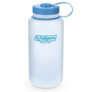 Nalgene Wide Mouth 32oz BPA Free HDPE Loop Top Water Bottle Natural w/Blue Lid