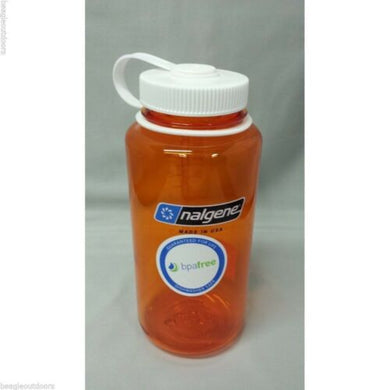 Nalgene Wide Mouth 32oz BPA Free Tritan Water Bottle Clear Orange w/White Lid