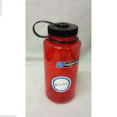 Nalgene Wide Mouth 32oz BPA Free HDPE Loop Top Water Bottle Red w/Black Lid