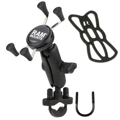 RAM Mount Handlebar Rail Mount w/Zinc Coated U-Bolt Base and Universal X-Grip Cell/iPhone Cradle [RAM-B-149Z-UN7U]
