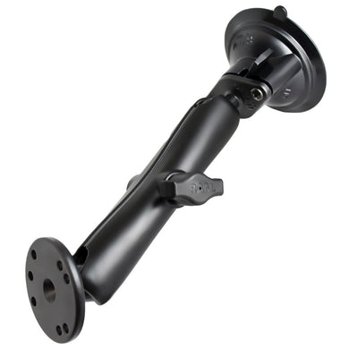RAM Mount Twist Lock Suction Cup Mount w/Long Double Socket Arm & 2.5" Round Base - AMPS Hole Pattern (9" Length) [RAM-B-166-C-202U]
