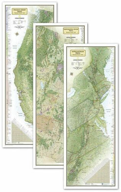 National Geographic Triple Crown of Hiking - 3 Wall Maps 18" x 48" in Gift Box