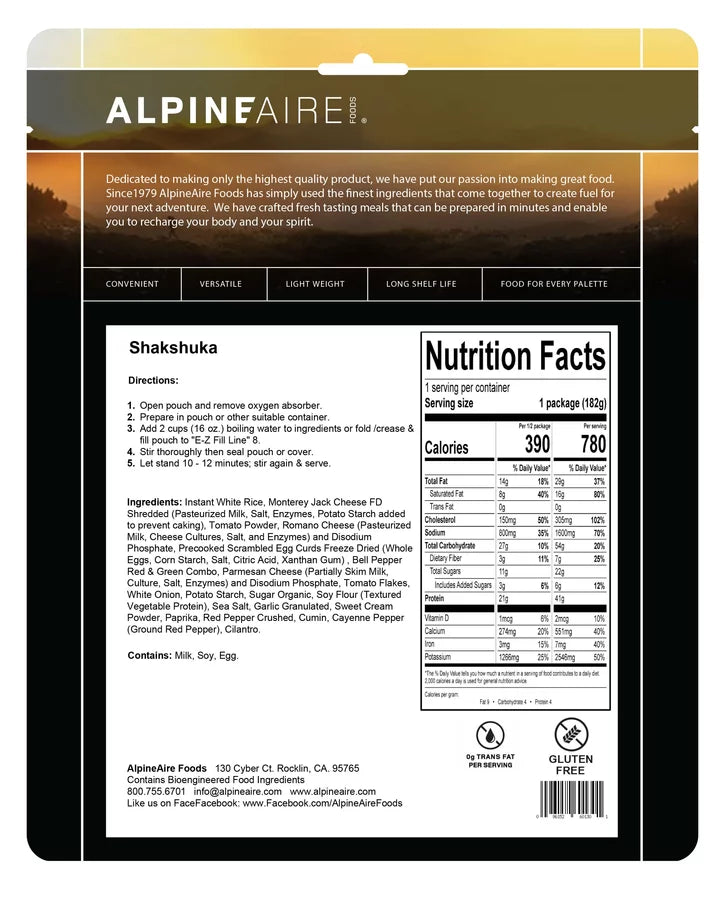 Dedicated to making only the highest quality product, we have put our passion into making great food. Since 1979 AlpineAire Foods has simply used the finest ingredients that come together to create fuel for your next adventure. We have crafted fresh tasting meals that can be prepared in minutes and enable you to recharge your body and your spirit.